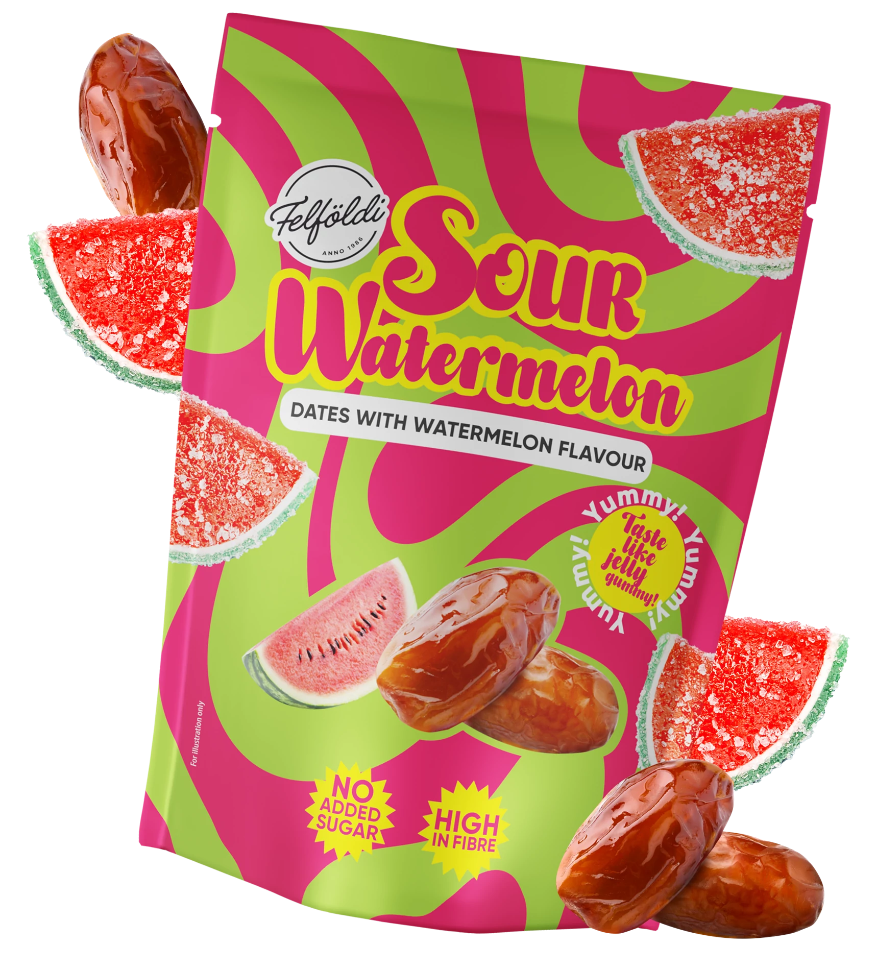 Magozott datolya 96,6 %, hidrogénezett kókuszzsír, inulin, savanyúságot szabályozó anyag: almasav; aroma.
