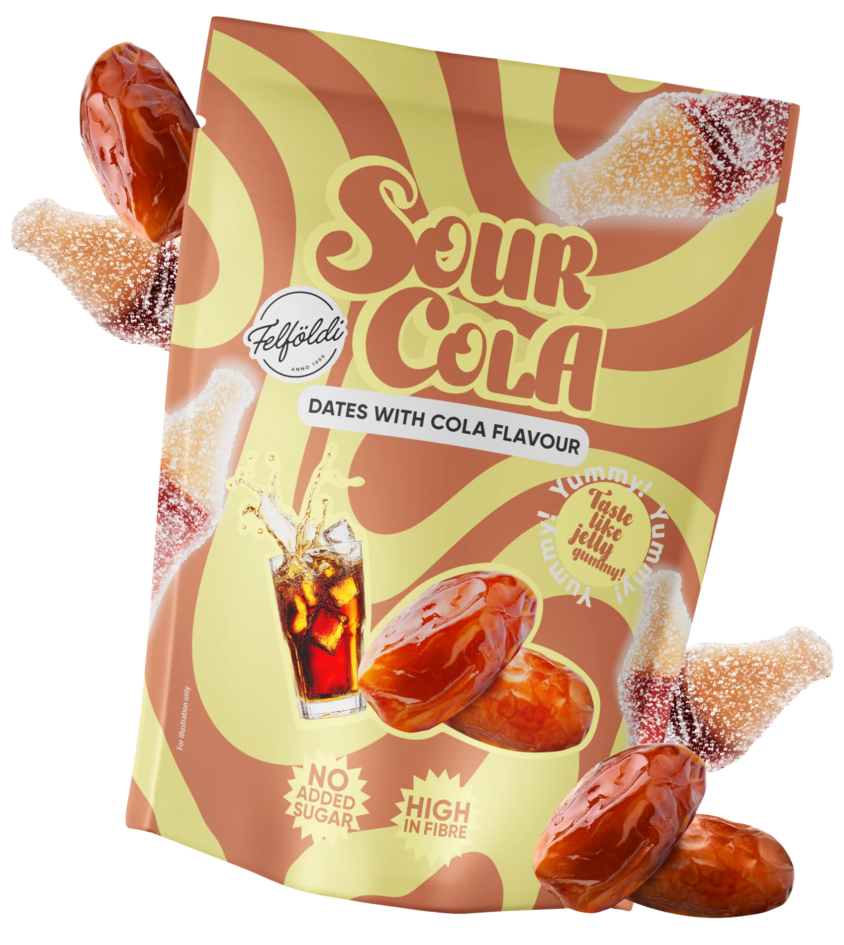 magozott datolya 96,6 %, hidrogénezett kókuszzsír, inulin, savanyúságot szabályozó anyag: almasav; aroma.