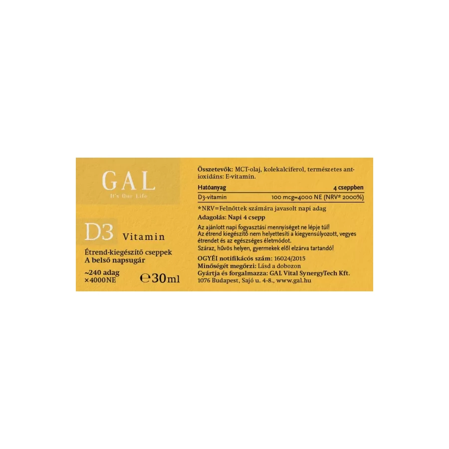 A GAL D3-vitamin összetevői