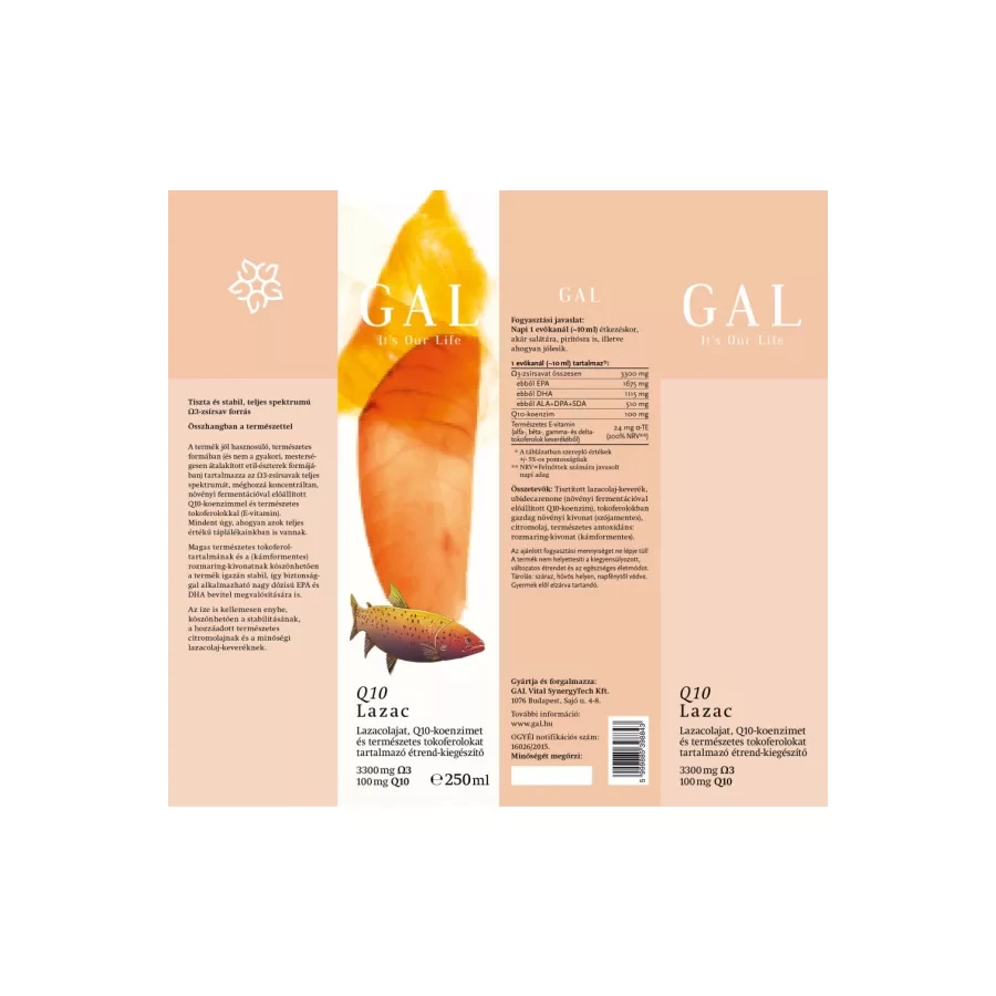 Q10-es lazacolajunk növényi fermentációval előállított Q10-koenzimet is tartalmaz, amely a mai kutatások alapján a legmegfelelőbb forma. Mivel bő olajban van oldva (10 ml-ben van 100 mg), ezért a Q10 felszívódása is kiváló. A Q10 hasznosulását ráadásul a termékben lévő citromolajban természetesen jelenlévő magas d-limonén tartalom is tovább segíti.